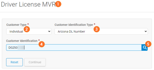 - Select the Customer Identification Type you want to use to search for the customer. In this example we use Arizona DL Number.