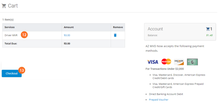 - The Driver License MVR service will be added to the cart.