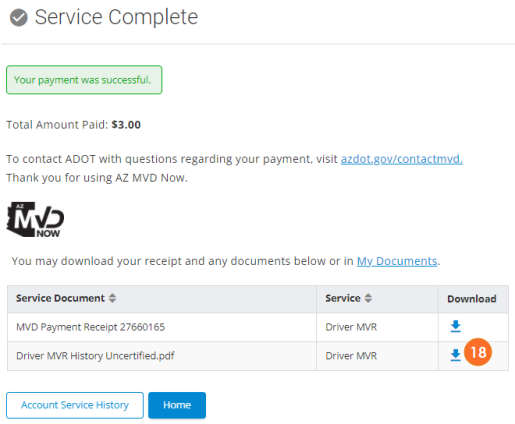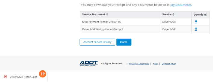 - To view and print MVR and/or the payment receipt, click the download icon.