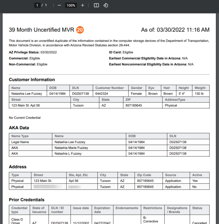 - The Driver License MVR will open as a PDF.