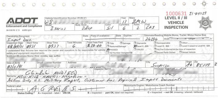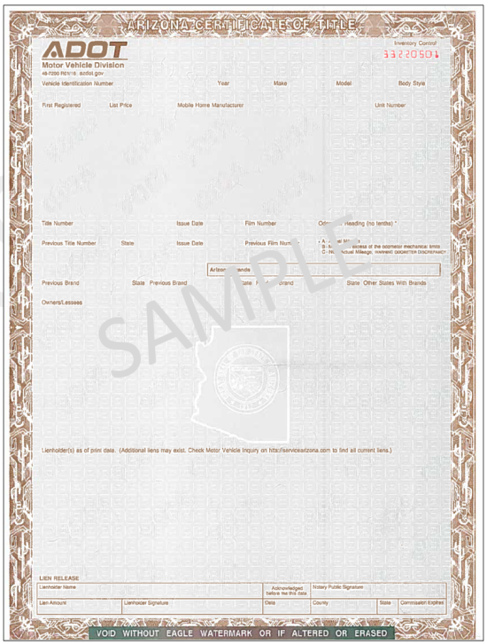 This is the ONLY acceptable document to issue an Arizona title and/or registration. |