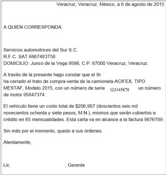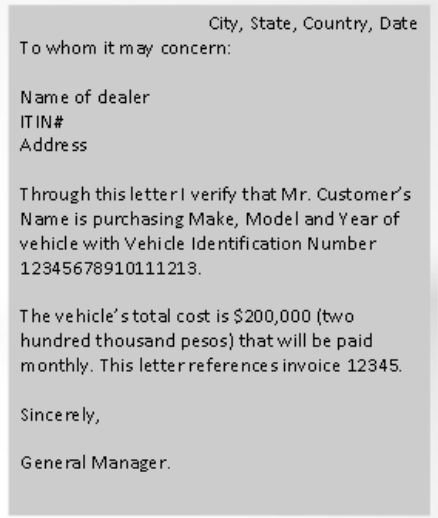 This invoice letter is used when a vehicle has a lien.