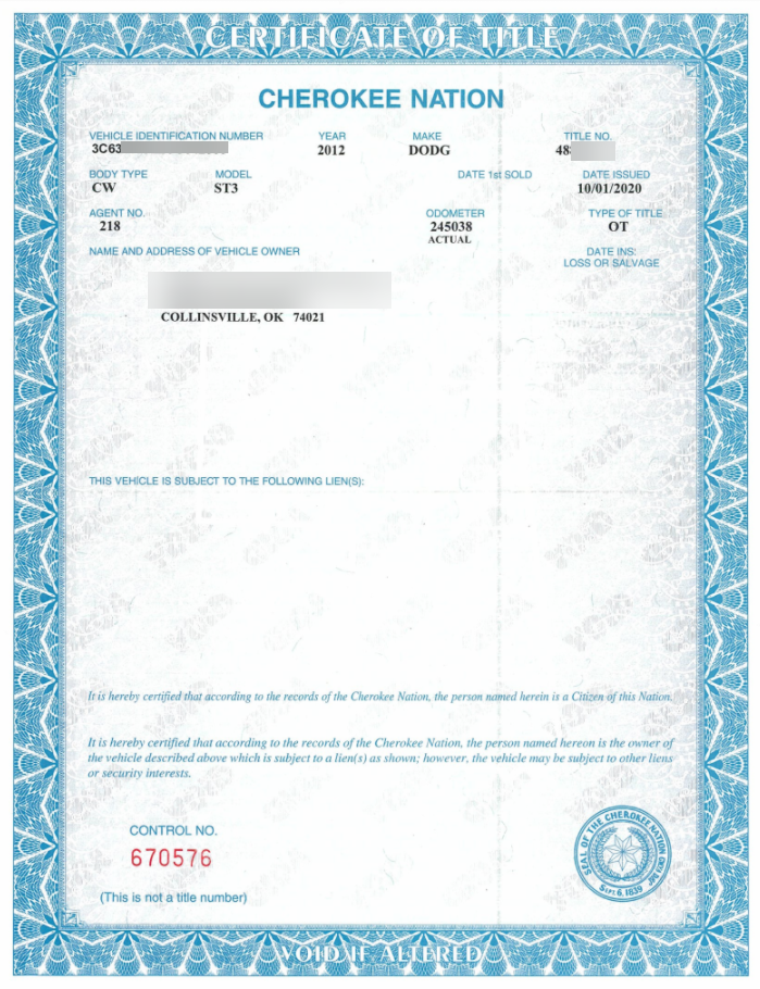 Example of Cherokee Nation Title