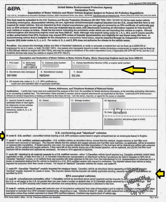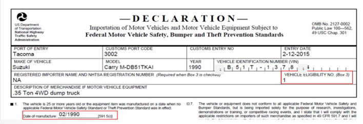 This form is may be required when the vehicle is imported back to the U.S.
