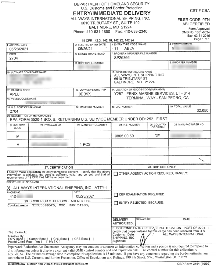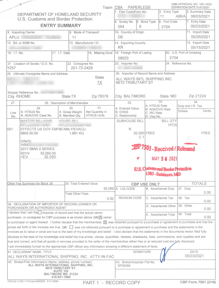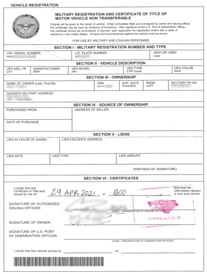 Military members who have had their vehicles imported to the U.S. may have Department of Defense Military Registration & Certificate of Title ownership documentation. If they do, they will also need: