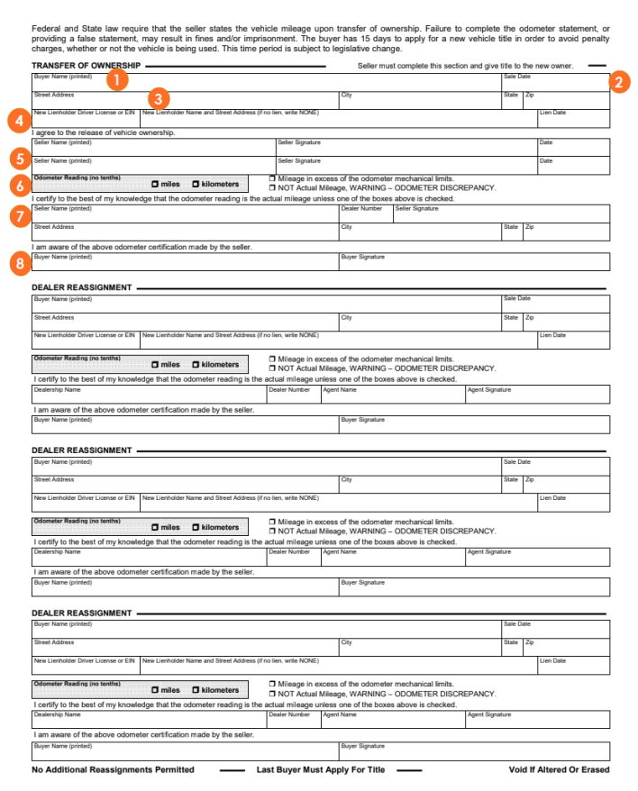 - When the owner sells the vehicle to a dealership, a completed Secure Odometer Disclosure may take the place of the odometer information being recorded on the back of the title